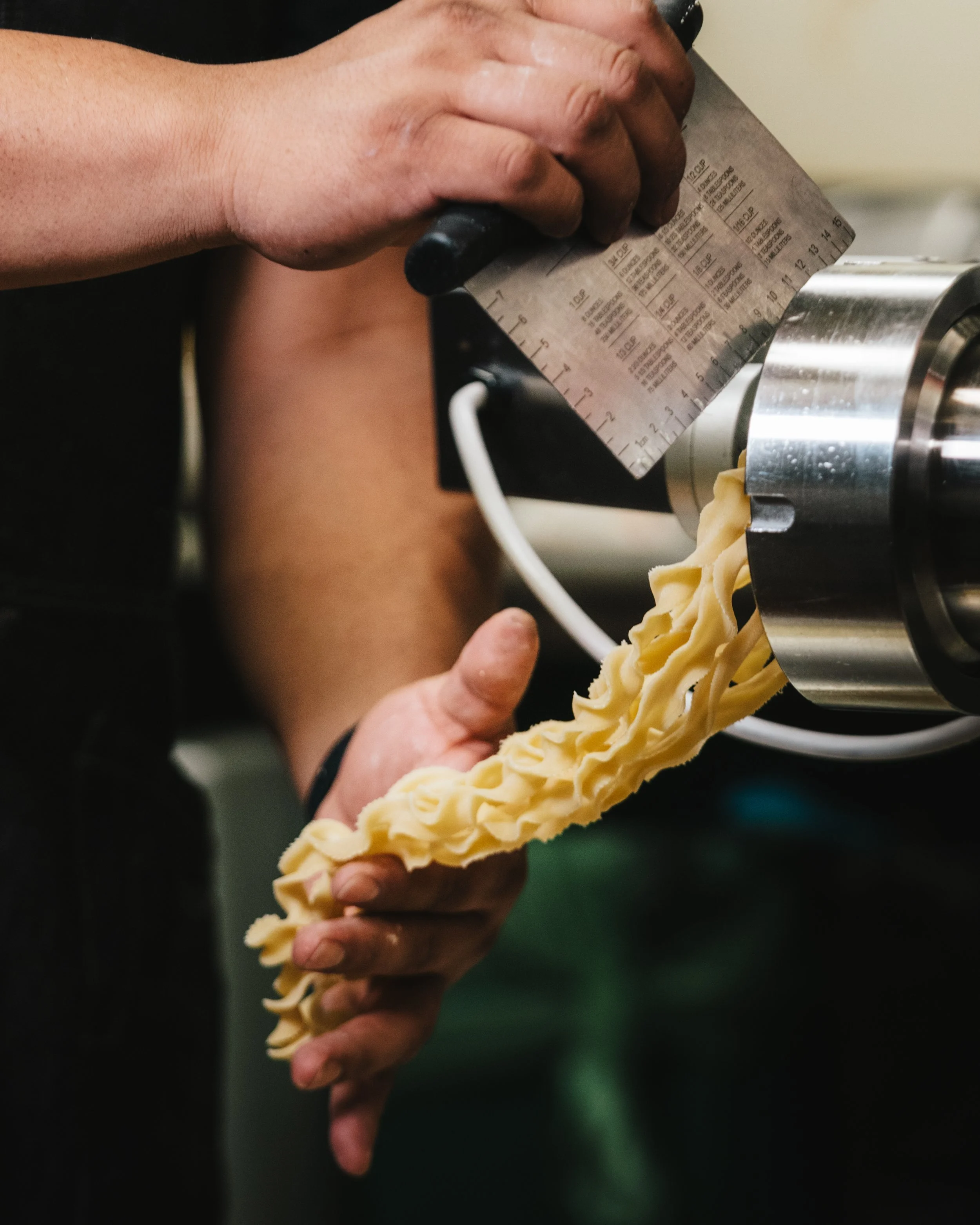 At Gemelli, we use a state-of-the-art Italian-imported Italgi Pasta Machine — one of only three of its kind in the US — to craft a rotating selection of 15 unique pasta shapes, each designed to elevate flavor and texture in every dish.